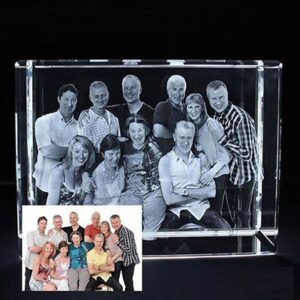 Xuất xứ từ nước Đức, công nghệ khắc hình trong khối pha lê đang là “mốt” ở nhiều nước châu Âu và một số nước châu Á. Đây là dòng sản phẩm cao cấp được khắc hình ở giữa nhờ công nghệ khắc tia laser tiên tiến (có thể đưa bất cứ hình ảnh nào vào giữa khối pha lê). Đủ loại hình khối pha lê được gọt giũa theo yêu cầu của khách hàng, đủ kiểu hình ảnh chân dung, gia đình… nằm gọn trong khối pha lê đẹp đến lung linh.