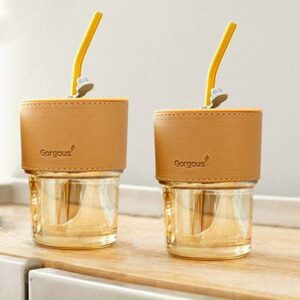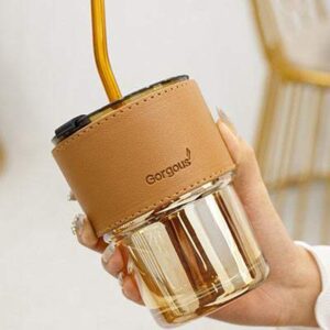 Ly thủy tinh tròn có ống hút, phối da, chất lượng tốt