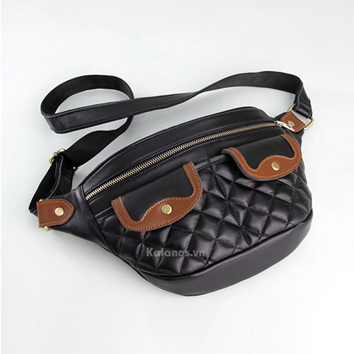 ✔️ Kiểu dáng: Túi đeo chéo, túi bao tử màu đen phối nâu
